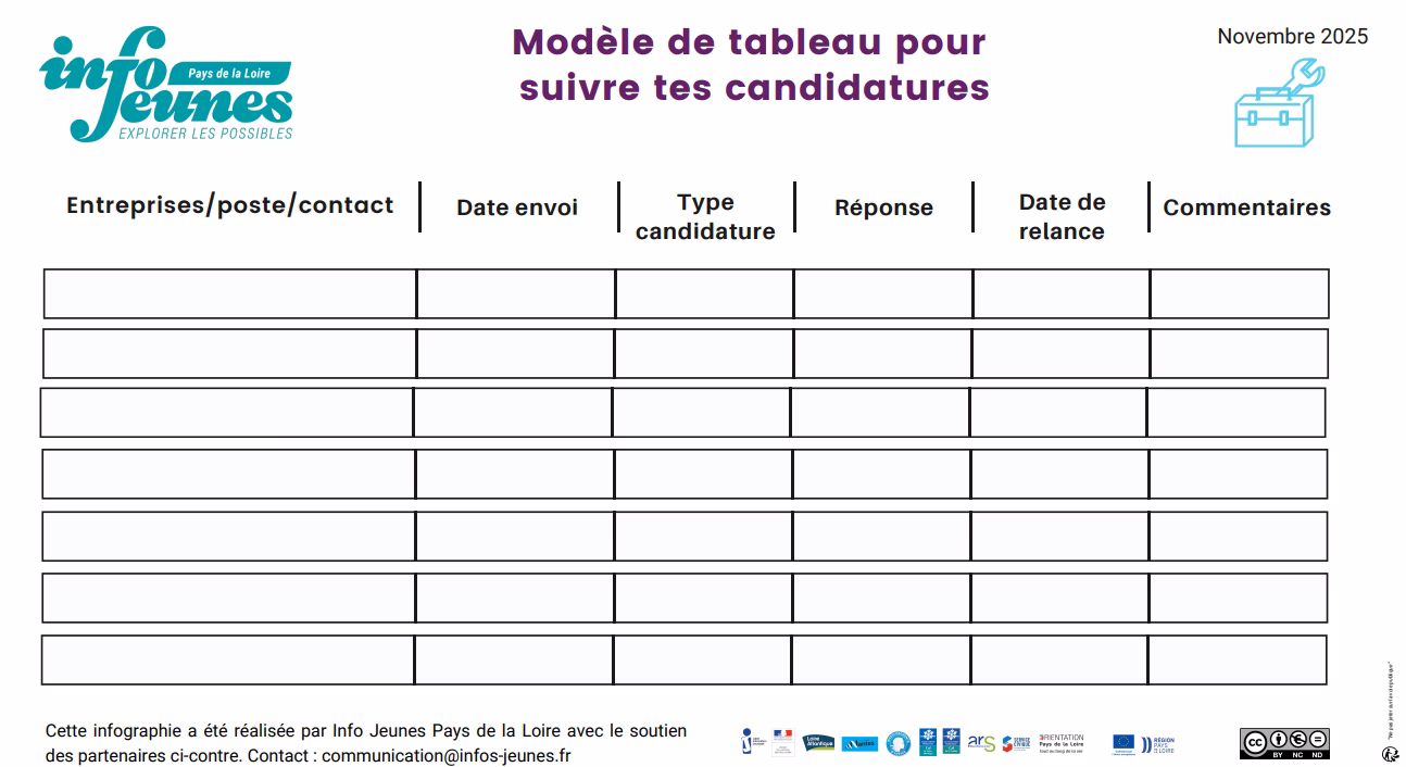 Outil de base dans le suivi de tes candidatures, le tableau présente de nombreux avantages. Il permet dès le premier coup d’oeil de :