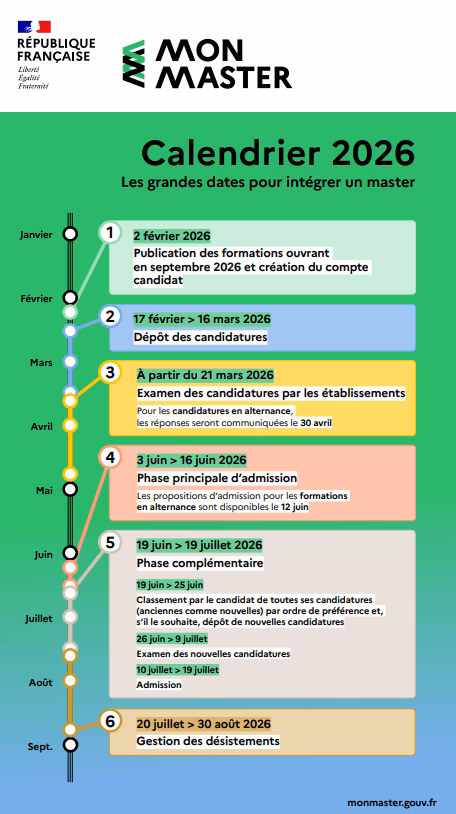 A l’instar de Parcoursup tu dois suivre le calendrier national et ses différentes étapes.