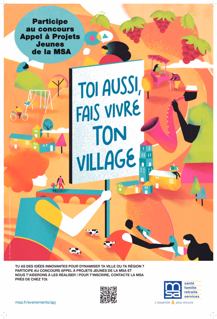 Chaque année la MSA lance un appel à projets « Mieux vivre en milieu rural ». Les jeunes de 11 à 22 ans sont soutenus financièrement pour créer de l’animation et du lien social sur leur territoire ! Il faut vivre dans une commune de moins de 15 000 habitants OU être assuré à la MSA.